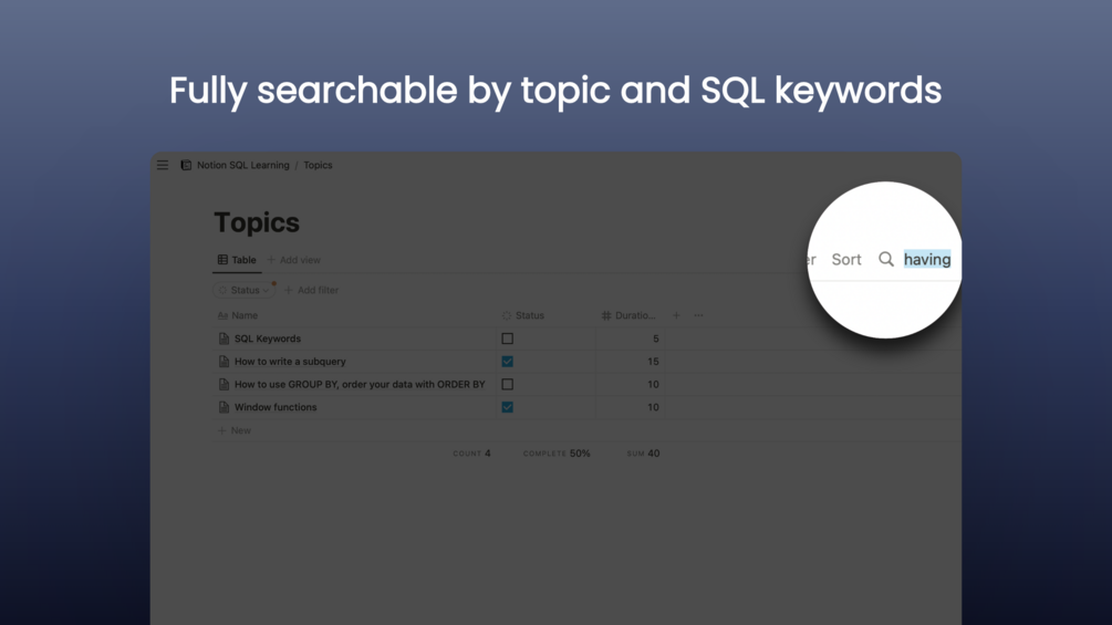 With Notion SQL Learning, you can: